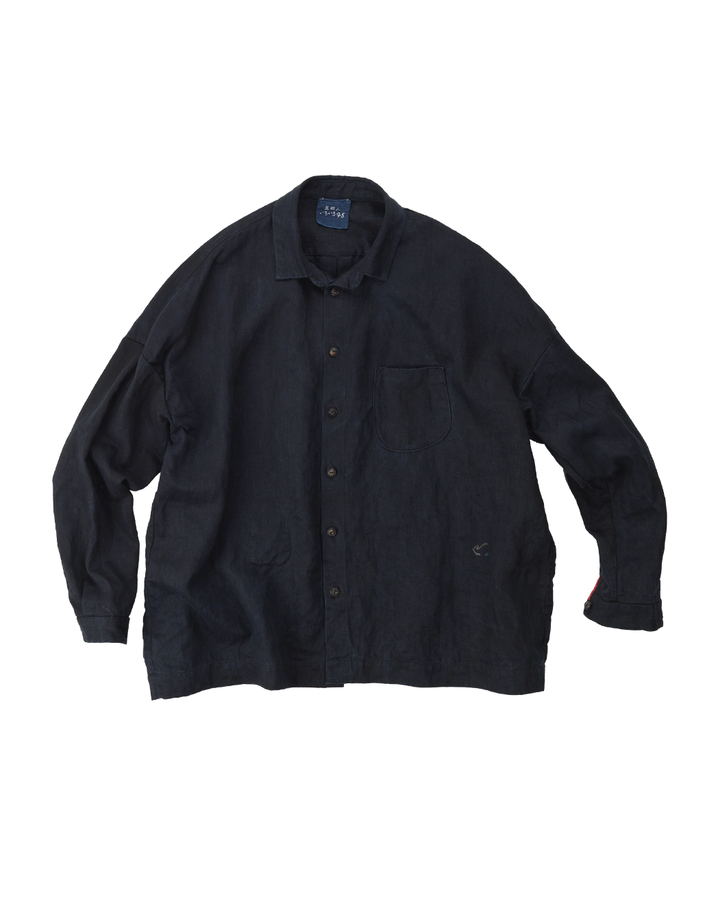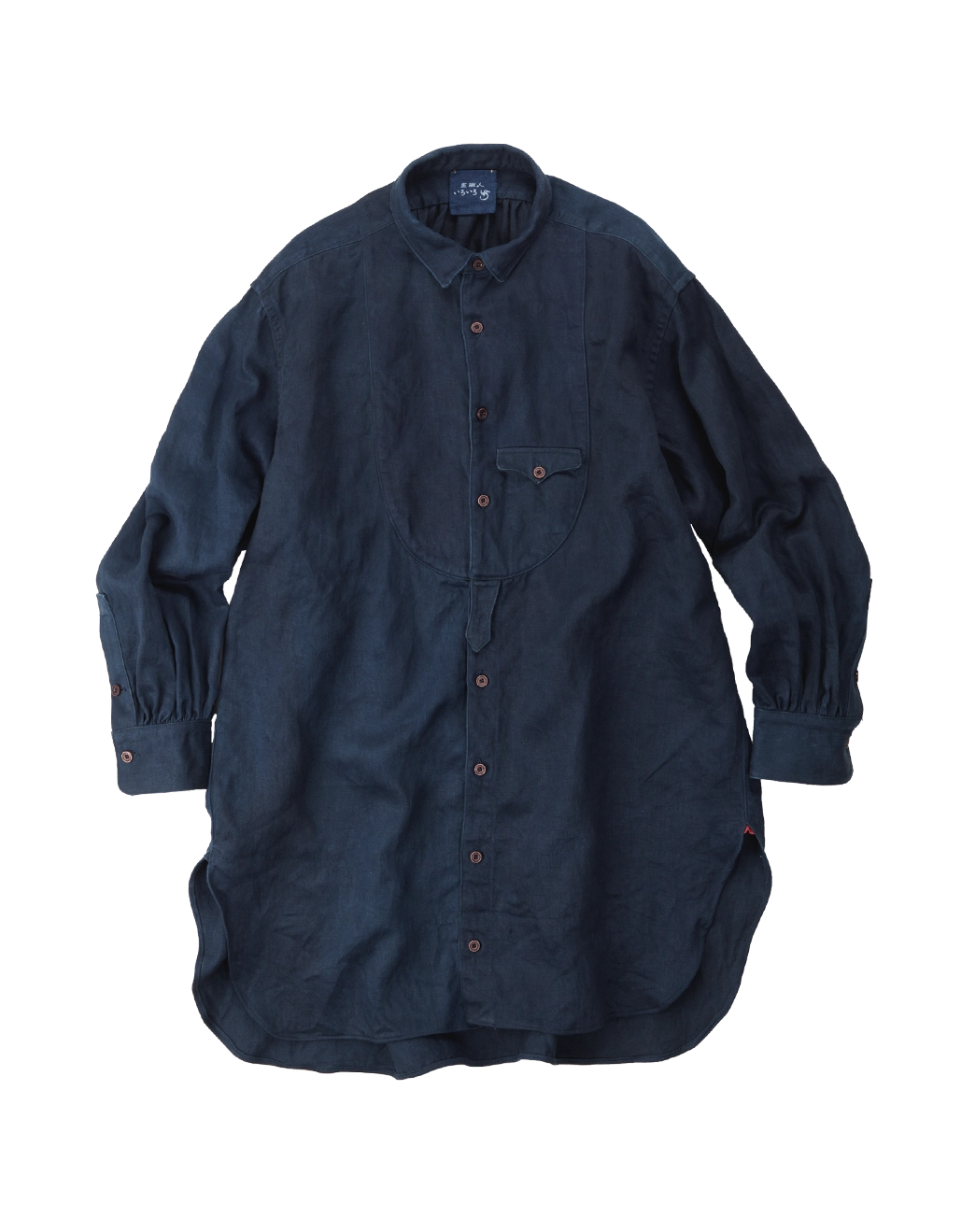 リネンサテンの908ちび襟スモックシャツ