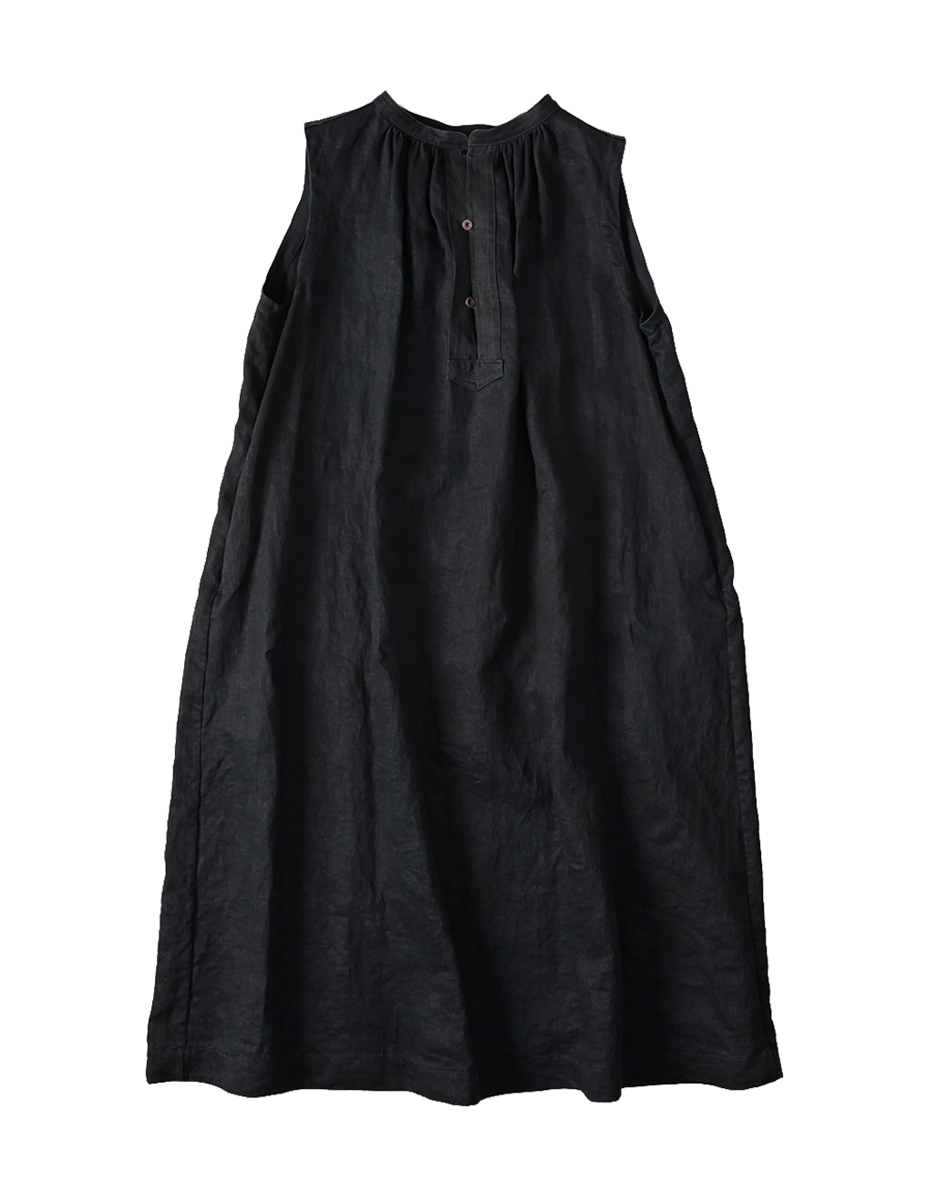 リネンサテンのノースリーブスモックドレス