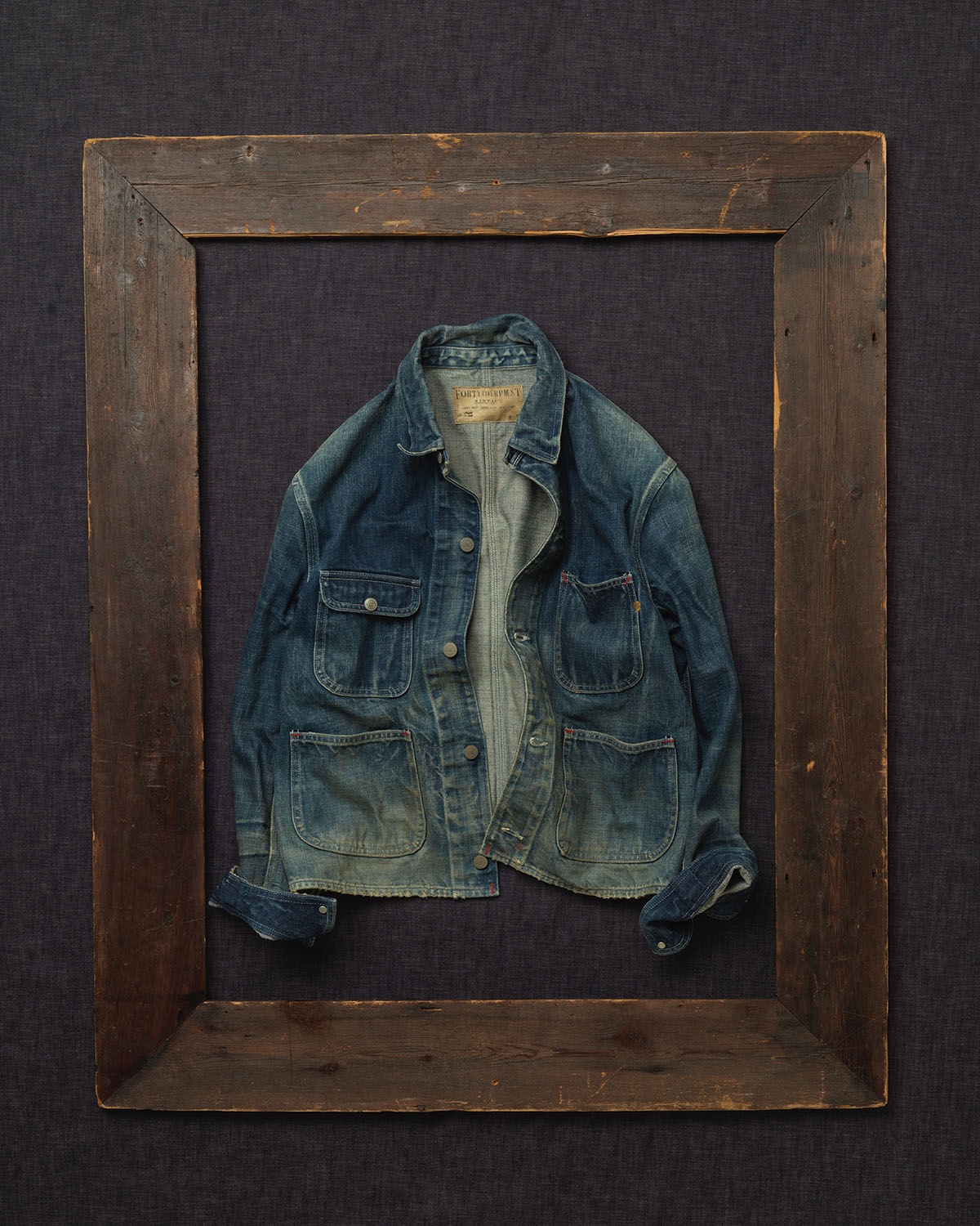 「とことんヴィンテージデニムを追いかけ、どこまで表現できるのか」そんな想いから生まれたこのデニムラインは、素材やかたちはもちろんのこと、生地の取り方や縫い方まで一切の妥協なし。そして長い年月を経てようやくたどり着くような、経年変化の跡までを力強く表現しました。本物のヴィンテージと見間違えてしまうほどのオーラは、細部に宿る細かな工夫の積み重ねによるものです。