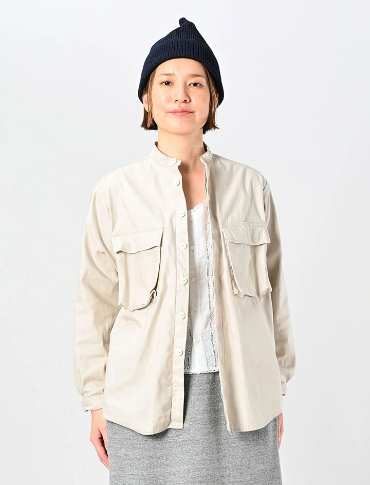 薄バックサテンの908ニームシャツ